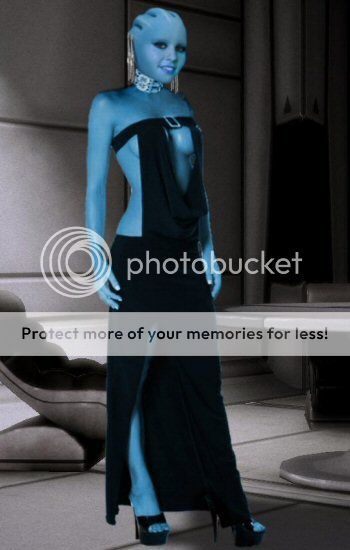 In return Taleeze was leaning and placed a gentle kiss on Skylars ear. “Hello Skylar! We have here an asari who is looking for her company. So far I don’t complain.” She grinned mischievously. She shuddered a bit on the touch of Skylars fingertips. “Oh thank you, but you look magnificent yourself!" She took a step back to admire Skylar, but took on a bit of a pose herself. It amused Taleeze slightly that both of them had obviously decided to be a leg show this evening. She offered her right arm to Skylar. “Hm, I was keeping a lookout but so far have not seen Daia or Ana.” In fact, she couldn’t make out any quarian. “You mean, Linya and Iryana? I haven’t met them personally yet but I thought, a drell would stand out as much as a quarian here, so let’s see…” She was scanning the crowd in the direction Skylarw as giving. Oh, and indeed, there was an orange drell head. As she looked, all of a sudden a tiny asari seemed to jump upwards and kiss that drell, before disappearing in the mass of heads again. “I think I saw them! Let’s go over then.” Taleeze smiled at the woman at her side. Most of people stepped aside courteously as the pair moved through the crowd towards the petite asari and the drell, approaching them from the side. “Good evening, ladies. Aren’t you Iryana and Linya? I am Taleeze, and I think you know Skylar?” She was offering both hands in classic asari fashion. |